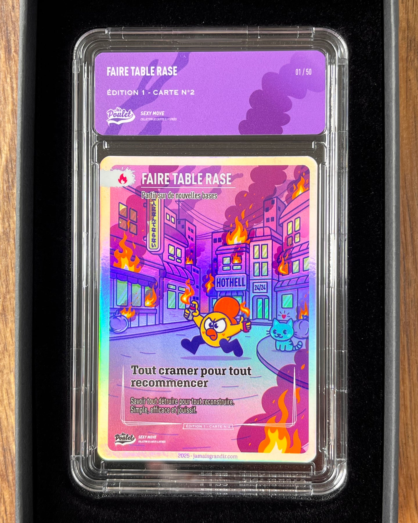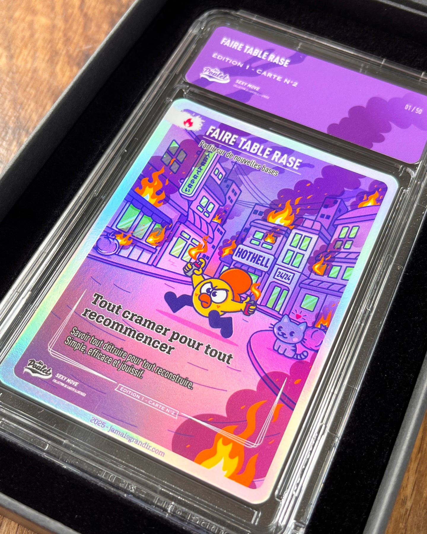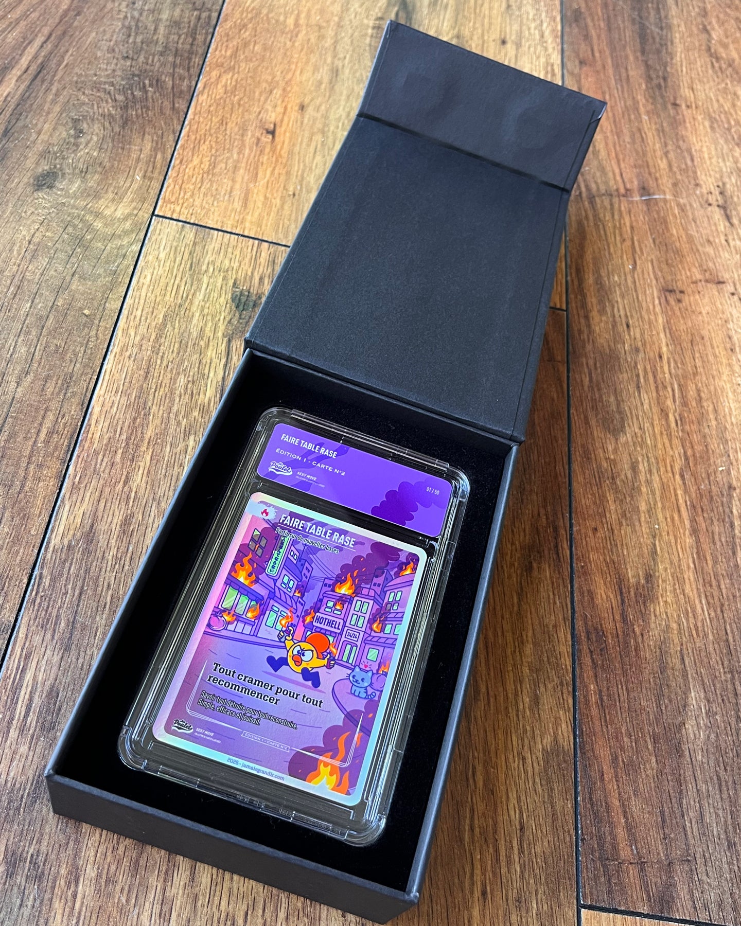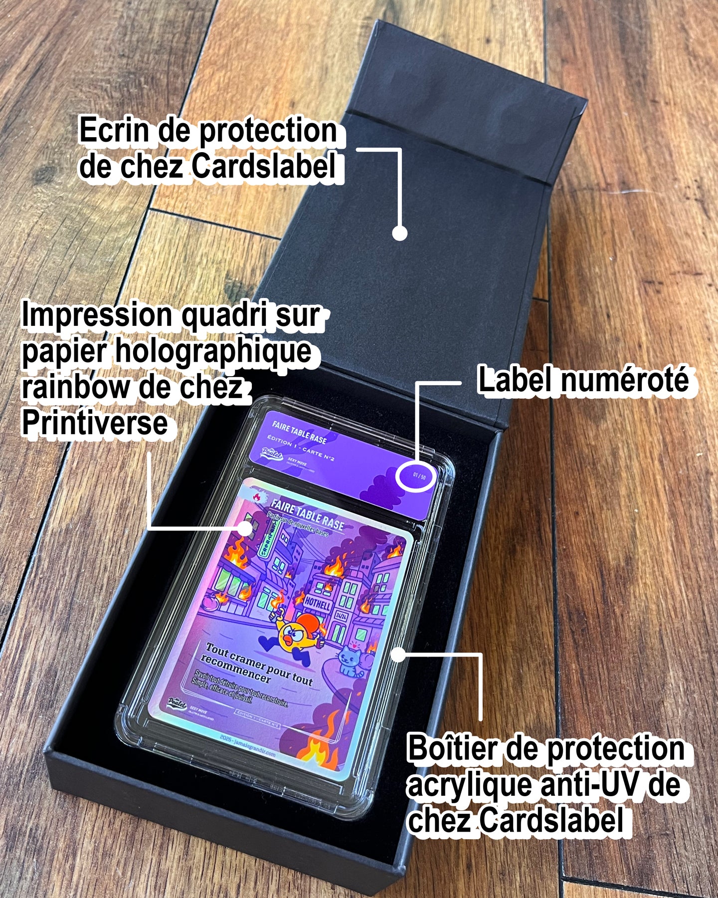 Le tirage de la carte est de 100 exemplaires et ne sera pas réimprimé. Il existe 50 exemplaires de la carte qui sont numérotés et sous boitier acrylique.