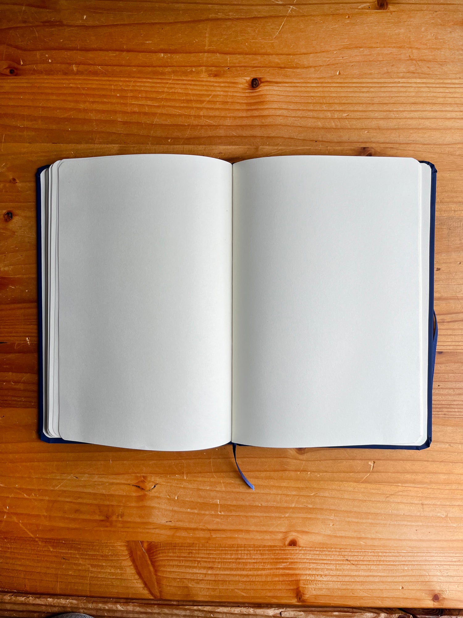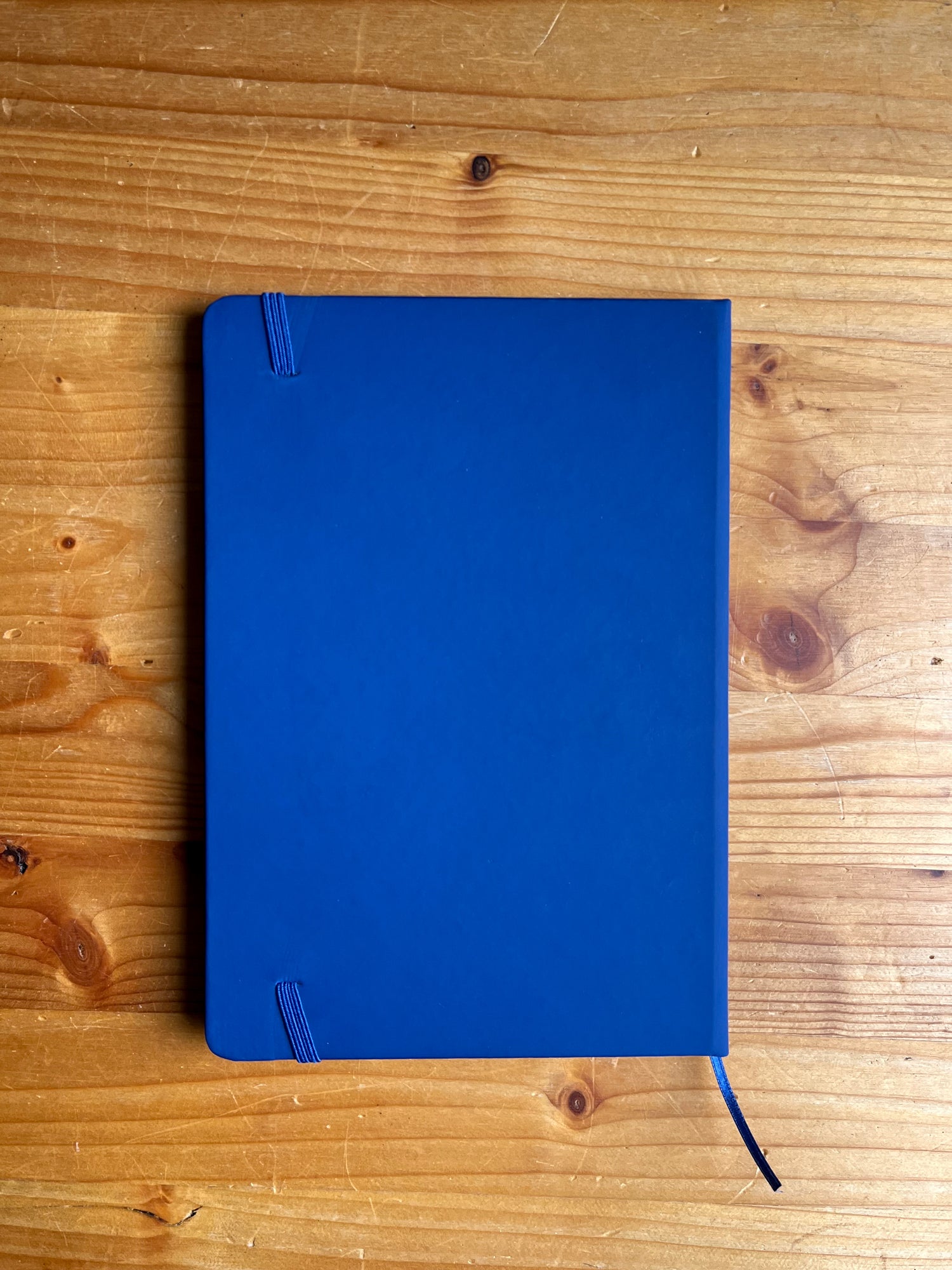 Bloc-notes A5 à couverture rigide en similicuir avec 100 feuilles blanches. Comprend un signet en tissu et un élastique assorti. Couverture Rigide.